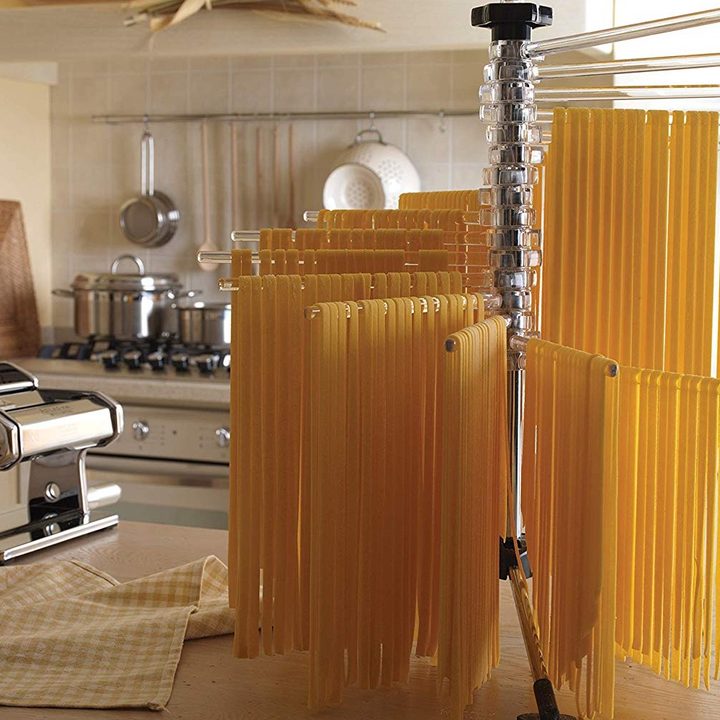 The history of homemade pasta dates back to the 12th century. Ancient Etruscans and Romans were the first to eat a form of lasagna, while nomadic Arabs first brought pasta to the Mediterranean from central Asia. This is actually where noodles may have originated. But Italy is certainly the place where pasta became one of the most famous dishes in the world. Pasta is one of those weeknight meal staples which parents and kids can both enjoy. Continue this rich culinary tradition with one of the fabulous pasta-drying racks that we have curated for you.