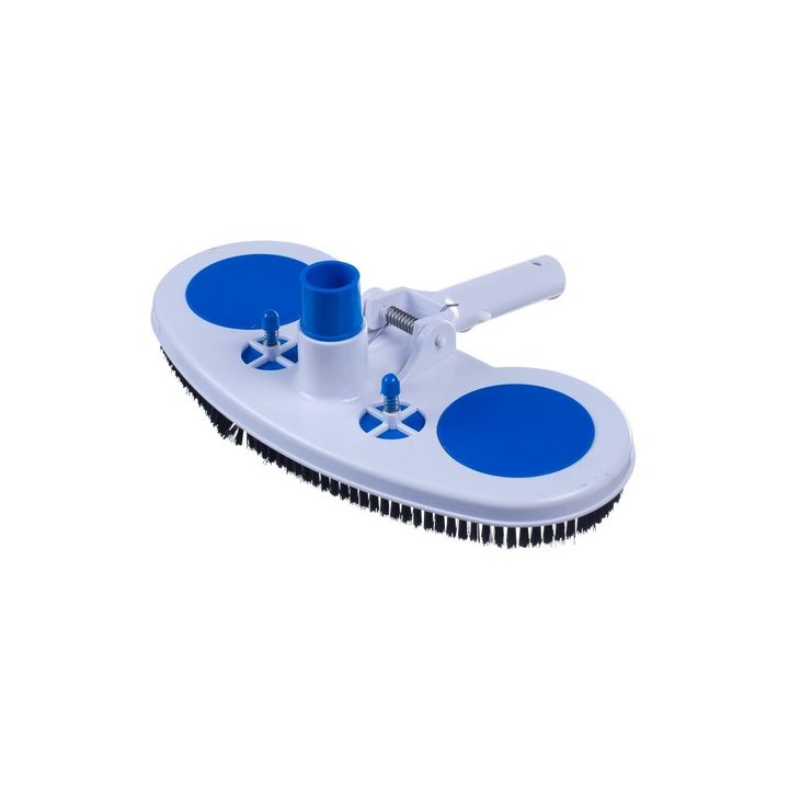 If you’re concerned about a vacuum possibly damaging your above-ground pool, then consider the Milliard Pool and Spa Vacuum Head. A top option with soft bristles, it offers polypropylene bristles designed to be firmer than nylon but softer than steel, providing a better balance to clean all types of pool surfaces. The vacuum’s port fits standard 1.25- and 1.5-inch vacuum hoses and its handle has spring-loaded locking clips.