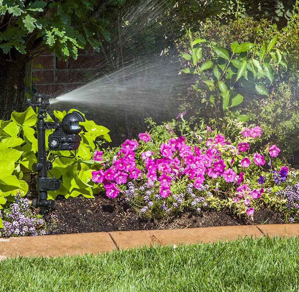 A humane method of repelling deer — one that uses a harmless spray of water to do so — is perhaps the best option. The Orbit 62100 Yard Enforcer motion-activated sprinkler can repel deer that way. It features day and night detection modes, and is designed to only activate when needed.