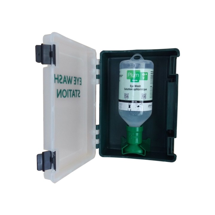 Provide quick access to first aid in case of an emergency with the Plum Single Eyewash Station, a compact yet effective way to clean and soothe your eyes. The sterile sodium chloride solution is similar to the eye’s natural lubricant and includes an ergonomic eyecup for ease of use. It comes with a handy box that can be mounted onto walls or trucks.