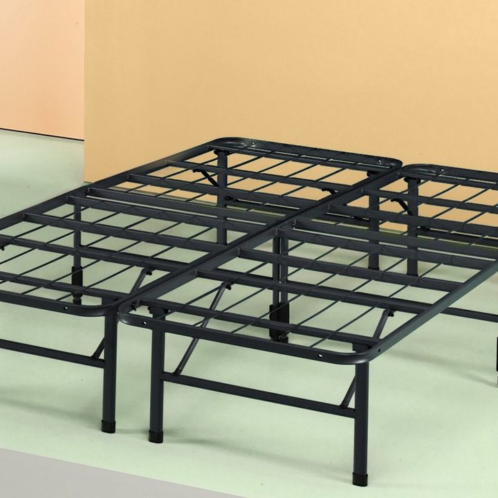 The Zinus Shawn 14 Inch SmartBase Platform Bed Frame is uniquely designed for optimum support. The strong steel mattress support was designed with multiple points of contact with the floor for superior stability, eliminating the need for a box spring. With 13 inches of clearance under the frame, the innovative folding design provides ease of use and convenient storage.
