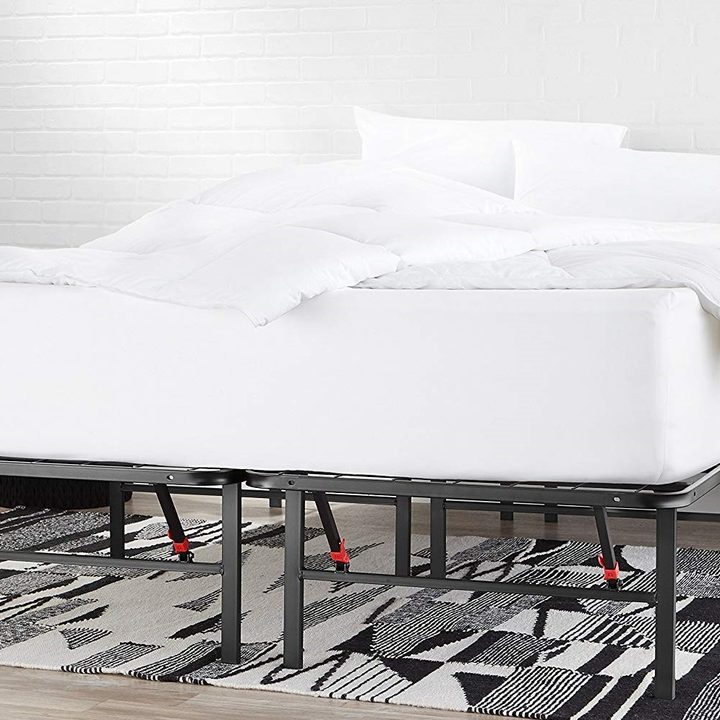 For the budget-oriented shopper, the AmazonBasics Foldable Metal Platform Bed Frame offers some serious quality build for an entry-level price. Featuring a rectangular-shaped design, the wire cross row design delivers incredible support without a box spring. This frees up space for under-storage of boxes, bins, drawers, and more.