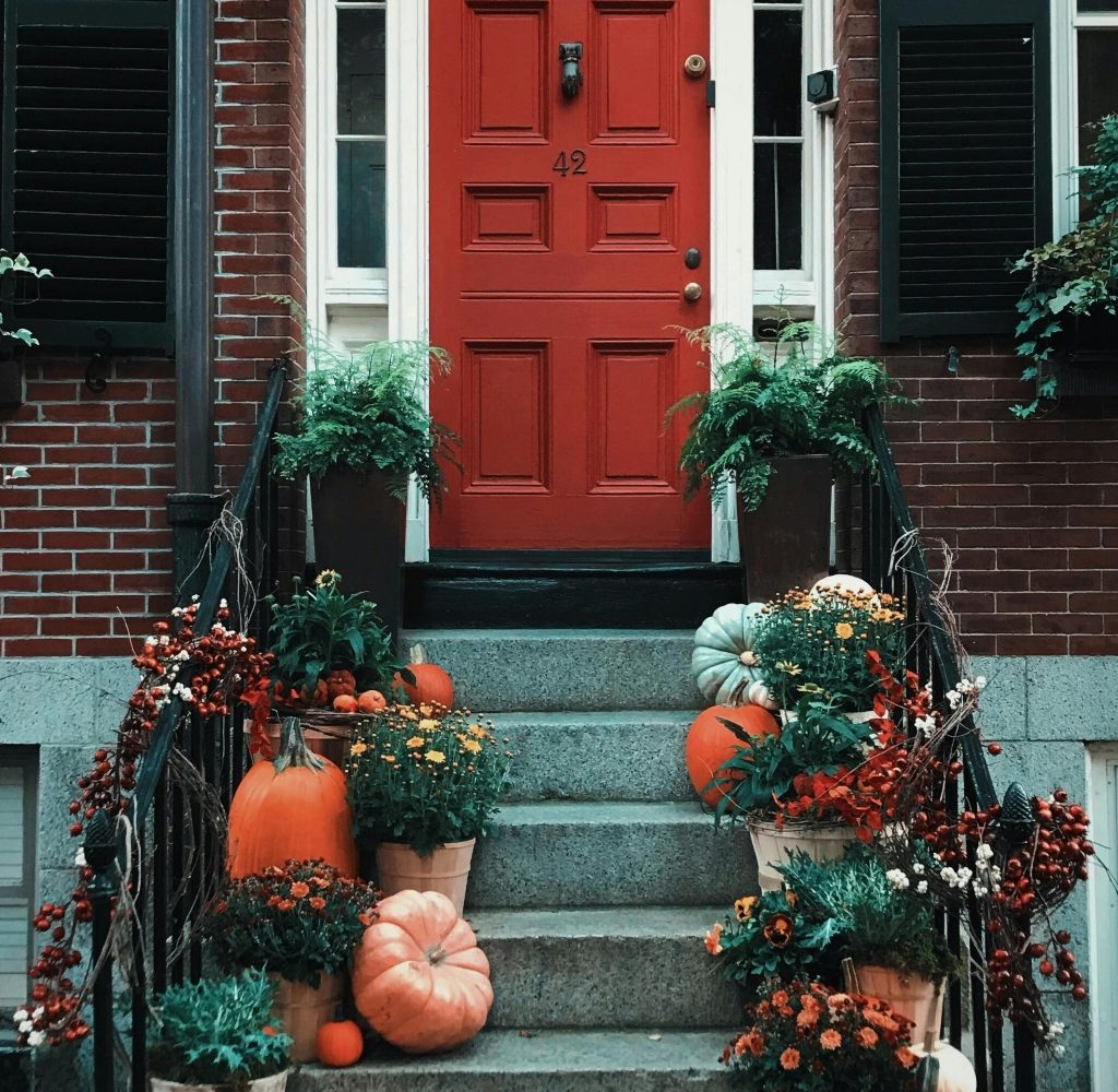 - Decorate front porch benches with colorful fall pillows, pumpkins, etc. like Hello Adams Family.