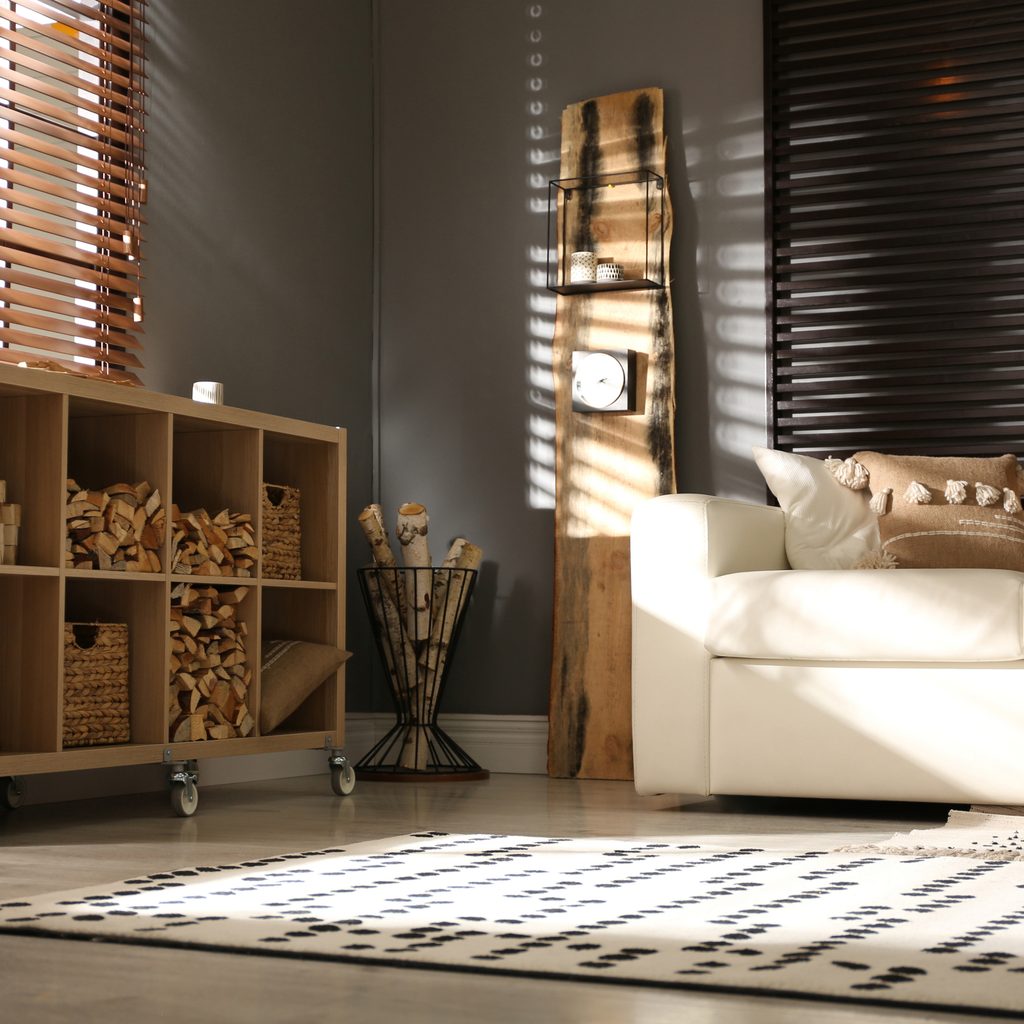 To add a little coziness to this room, focus on quality over quantity. Instead of filling the space with big blankets, and bulky statement pieces, use small, rustic textures to add character without taking away square footage. Incorporate dark wood, natural textiles, candles, and pillows in shades of rust, mustard yellows, and ivory. To take advantage of corner space, add an antique ladder and drape blankets over the rungs, or place a wicker basket there to store extra blankets. You can also create a reading nook in this corner, adding a cozy chair and a full bookshelf.