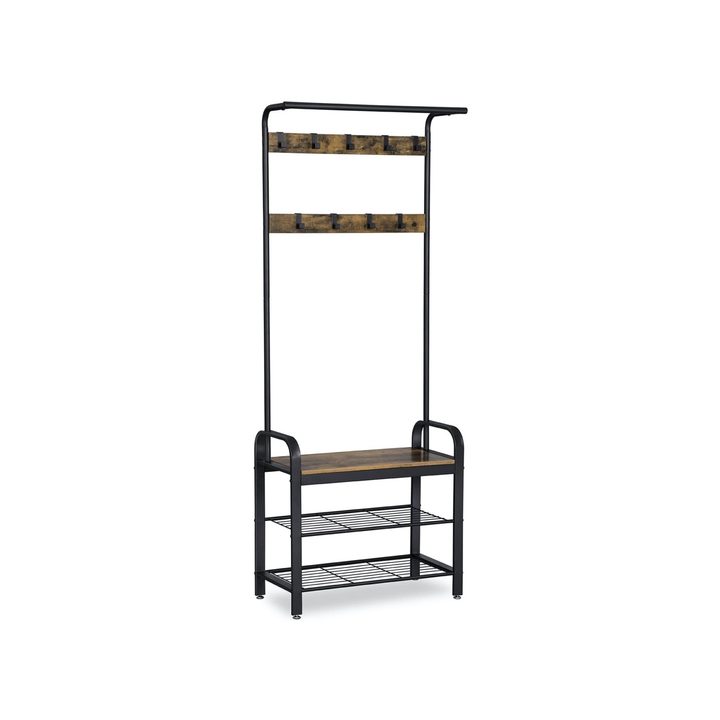 Take a look at the superior design and striking presence of the VASAGLE Industrial Coat Rack Shoe Bench. This lovely bench is quite the looker and delivers on functionality. It features 10 hooks, two racks for shoes, and a sturdy bench with a maximum capacity of 176 pounds. You will love the appearance and practicality of this great piece of furniture.