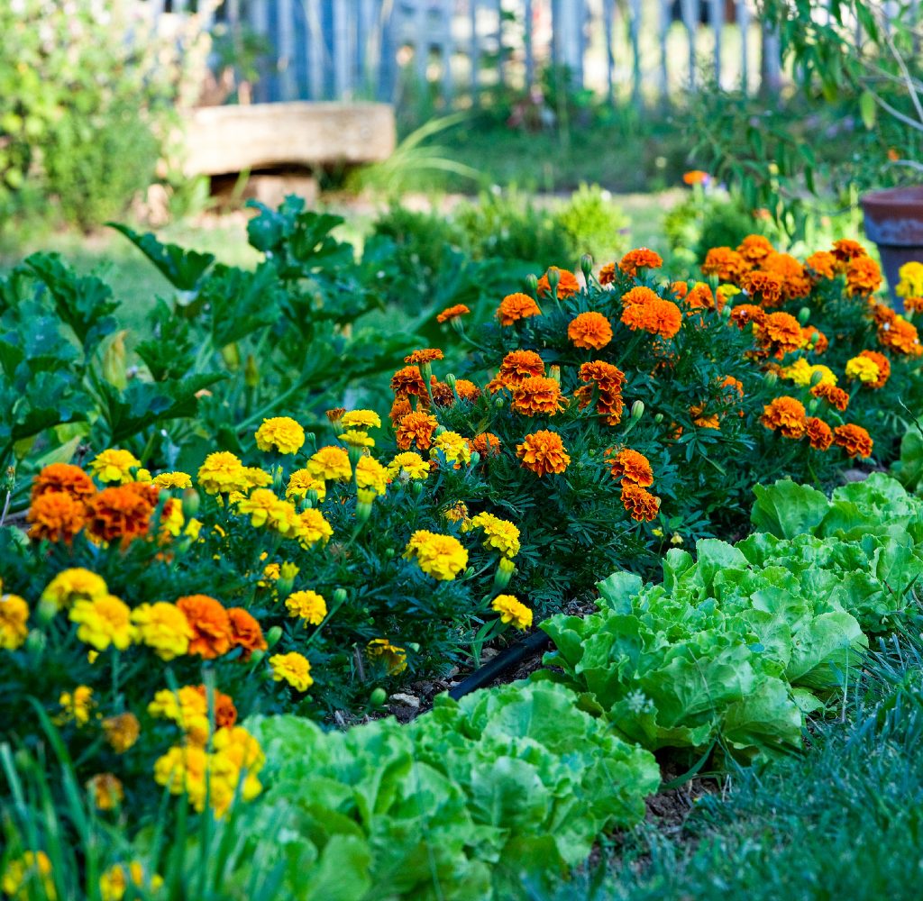 When picking your plants, remember that variation is key. A garden filled with flowers and no greens looks too busy, while an overly leafy vegetable garden lacks excitement. Maintain balance and use both annual and perennial flowers to ensure you have something blooming all throughout the season. If you prefer a vegetable-only garden, keep color in mind and plant purple chives, white spring onions, white or purple basil, and yellow dill.