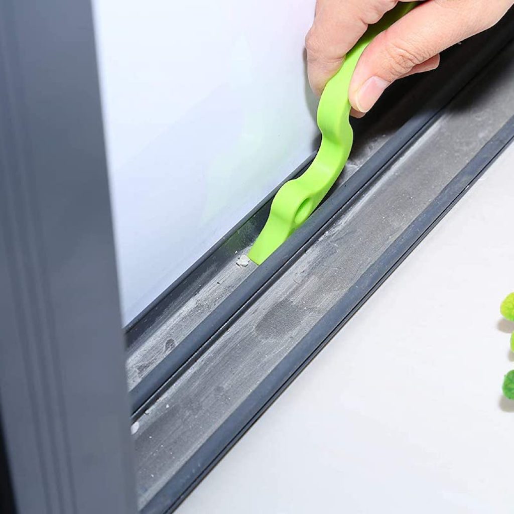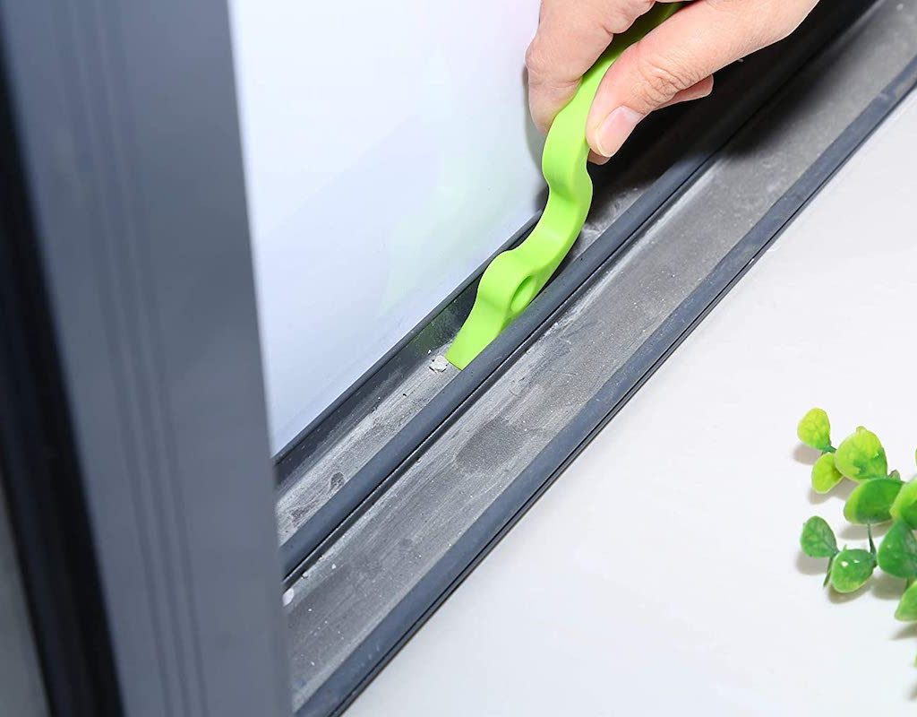 Clean windows, sliding doors, shower door tracks faster and easier than ever before. Designed to fit right inside the track, the unique two-in-one design has a brush to sweep away dirt and a scraper to dislodge debris from tight corners. It has an elevated curved handle with built-in finger grips for a secure hold.