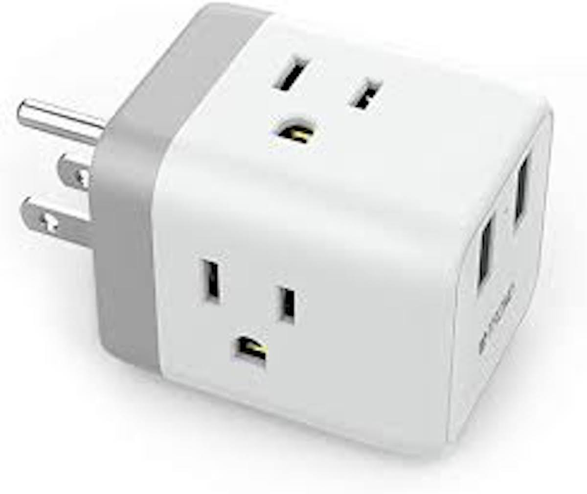 These days, you can never have too many outlets. This handy device charges multiple phones, iPads, laptops, desk lamps, warmers, toothbrushes, and gadgets at one time. Three 90-degree rotated outlets easily accommodate three bulky 3-prong power adapters without blocking another wall socket. Perfect for the bathroom, kitchen, bedroom, home, office, school, dorm room, or hotel room.