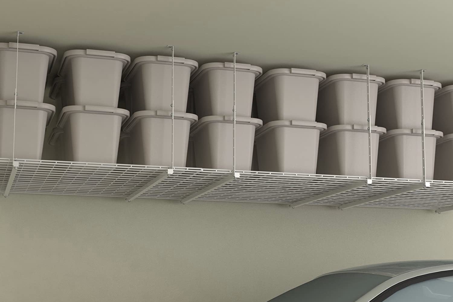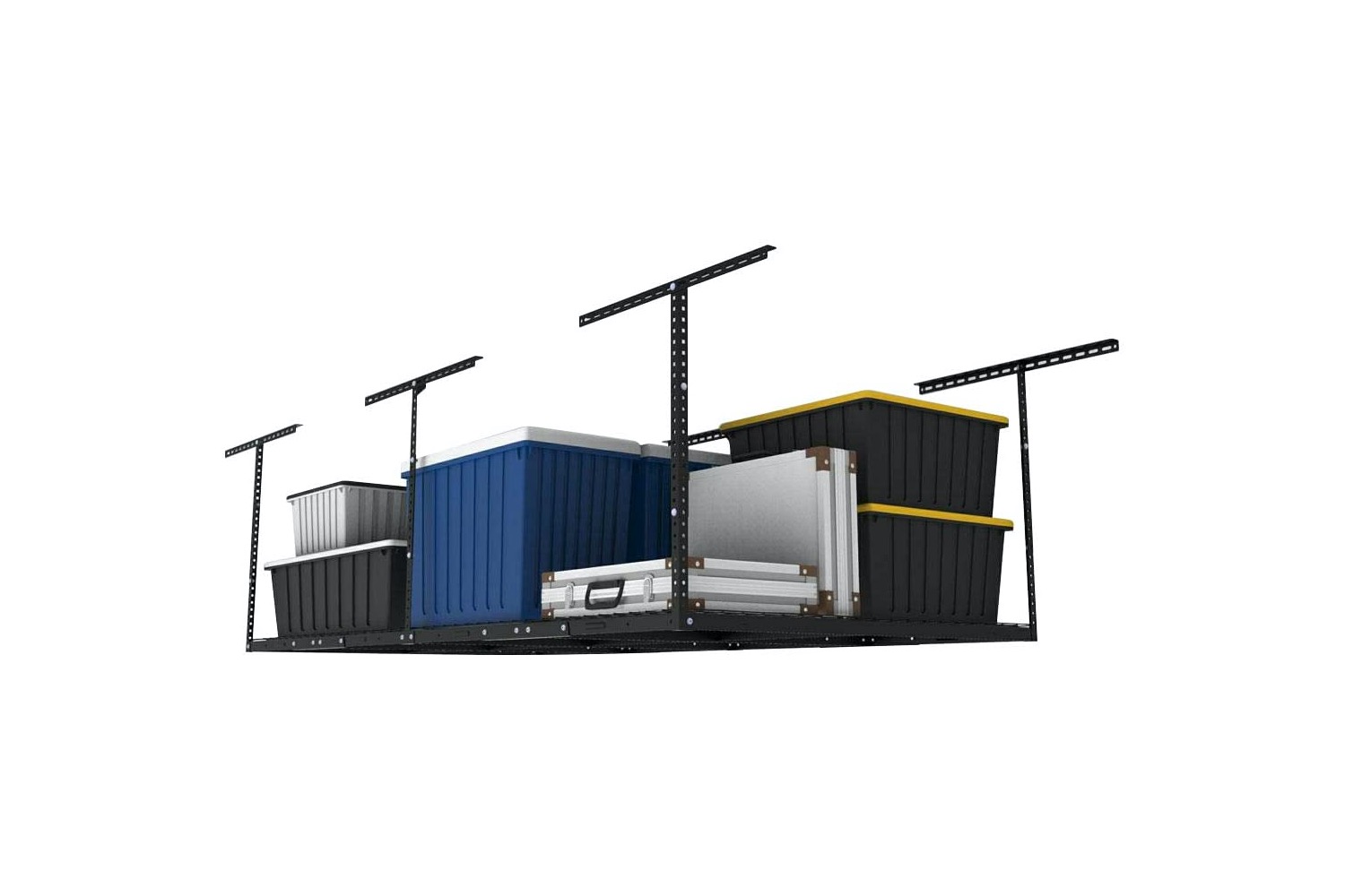 The Fleximounts Overhead Garage Storage Rack is a protective storage unit that helps prevent water damage and provides useful storage space for your seasonal and unused objects. It securely holds your items up with long ceiling brackets thanks to its optimally designed structure that ensures safe ceiling storage.