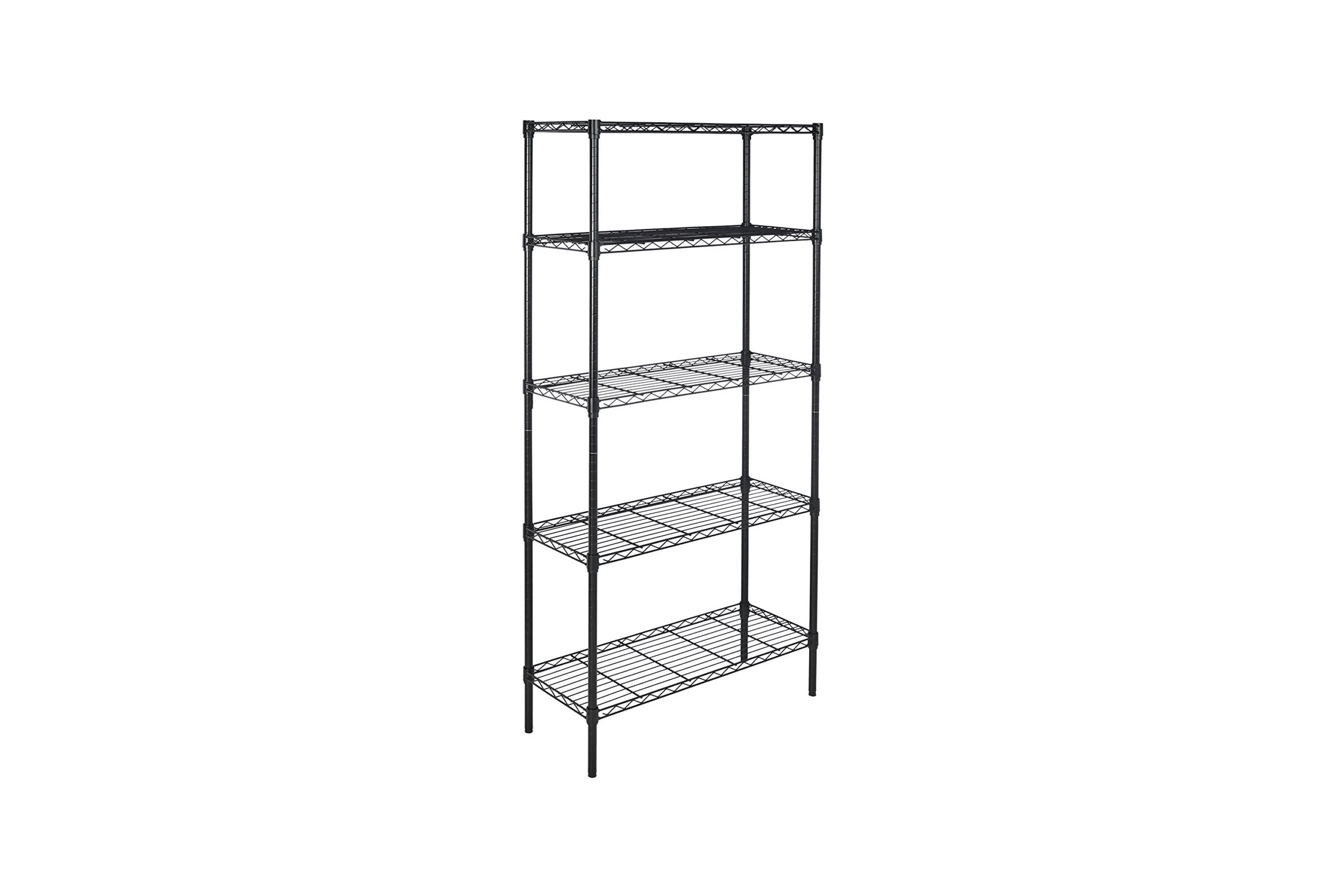 Each rack in the AmazonBasics 5-Shelf Storage Unit holds up to 350 pounds of evenly distributed weight, for a maximum capacity of 1,750 pounds. This powerful shelving unit can be adjusted in 1-inch increments to your ideal height, without the use of any tools. Perfect for any room of your home that needs strength, adaptability, and convenience.