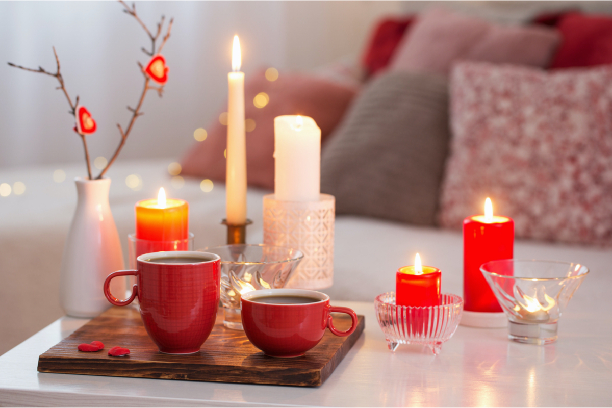 - Pull out all your red candle holders, candles, and tea lights, and create a romantic candlelit grouping on a shelf or table. The trick is to arrange candles together in various heights to maximize the impact. Note: be mindful of candle placement and never leave a lit candle unattended.