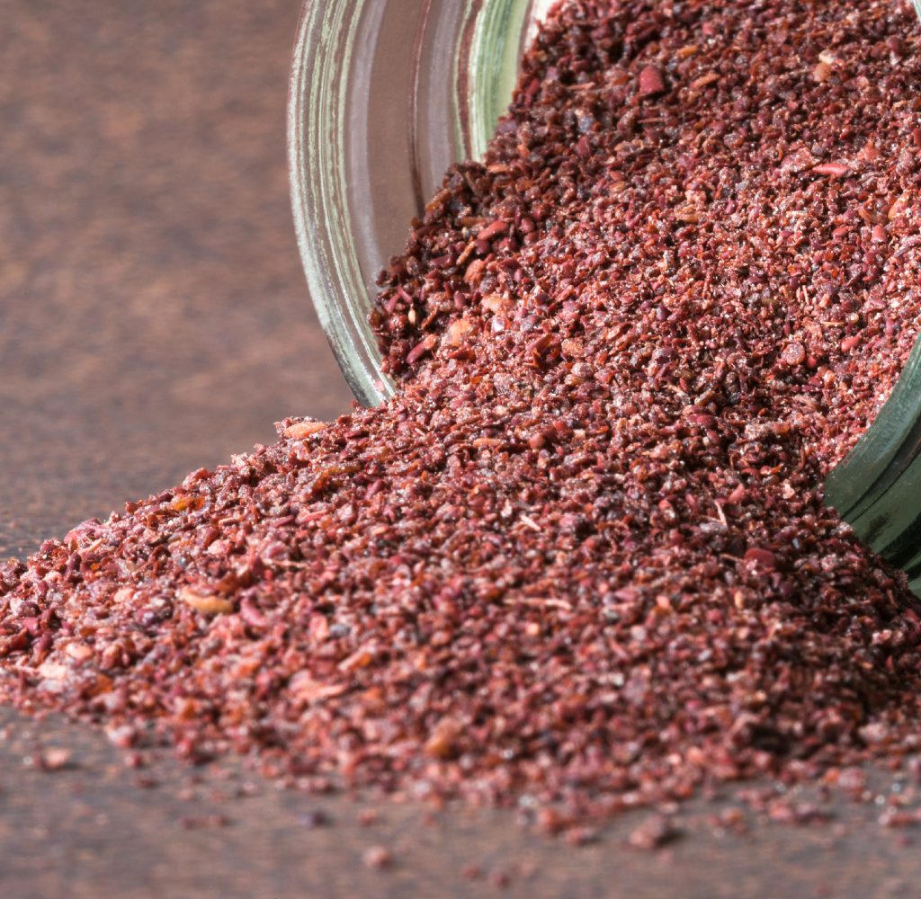 Sumac is commonly used in Arabic and Lebanese cooking, and much like salt, it brings out the natural flavors of the foods it is cooked with. Sumac blends well with spices such as allspice, chili, cumin, and thyme and can be used as a flavoring for vegetables, a rub for meats, and is the perfect seasoning for hummus. Sumac pairs particularly well with lamb and duck because it cuts through the fattiness of these meats. Similar to a squeeze of lemon as a finishing touch to a dish, sumac really shines when it is sprinkled over a dish right before serving. Sumac is also a good choice when you want to add lemon flavor to a recipe but don’t want to add liquid in the form of lemon juice.