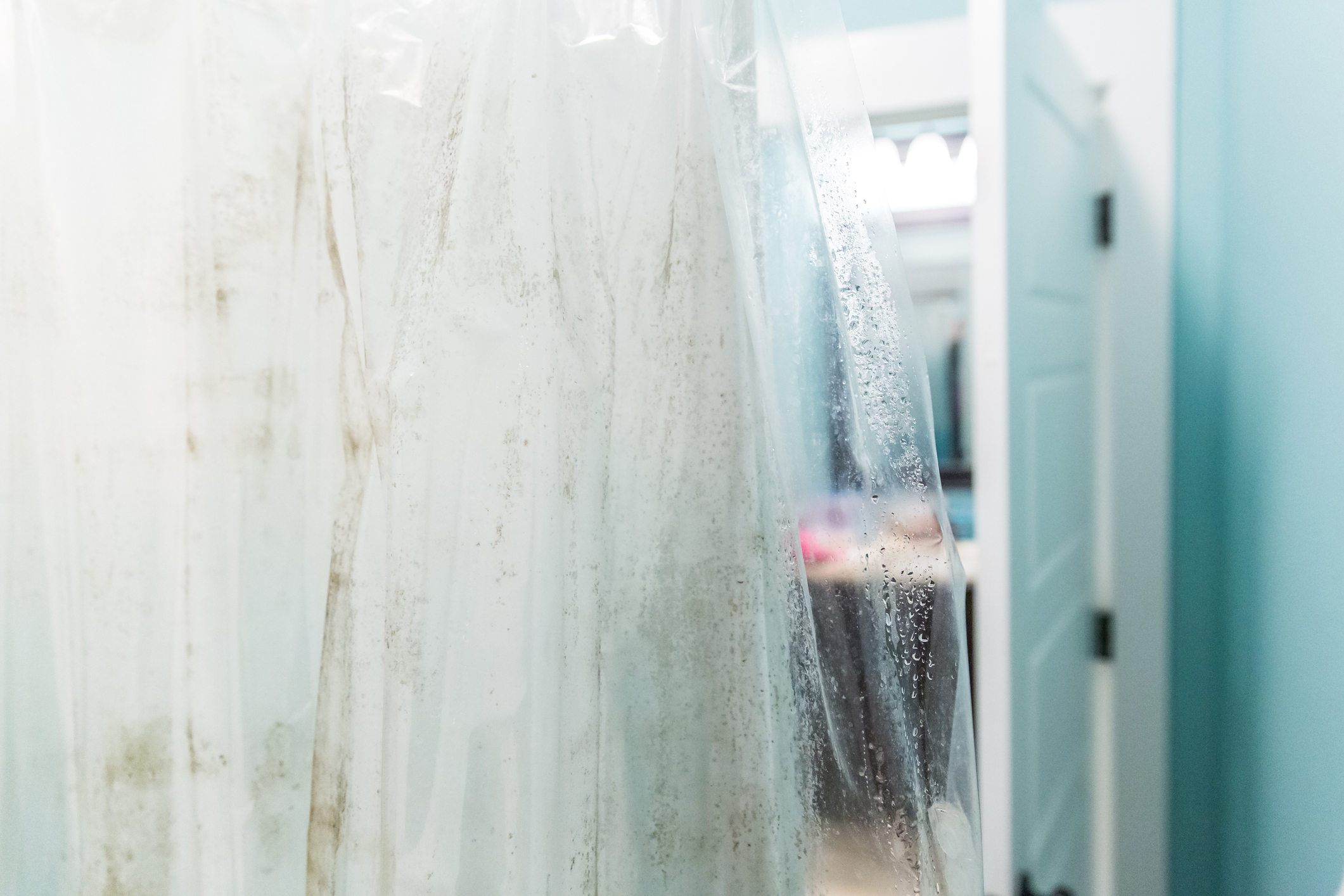 One of the biggest eyesores is a moldy shower curtain. A Magic Eraser can be the first step in getting your shower curtain clean. Another thing you can do is soak the shower curtain in a tub full of hot water and a cup or two of white vinegar to help kill mildew and mold stains.