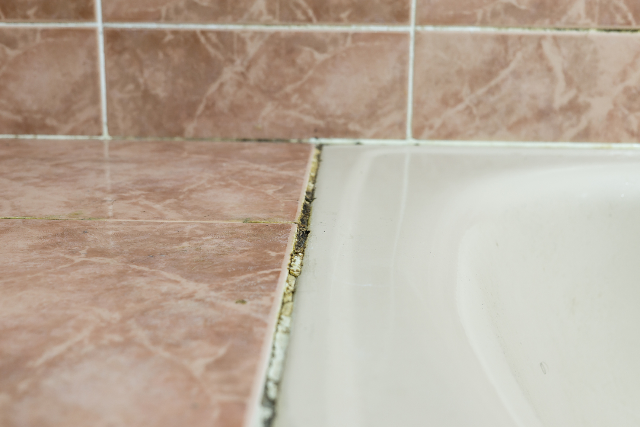 One way to freshen the caulk around the base of your tub is to use bleach-soaked cotton. You can get cotton coil from places like Amazon. Follow the instructions on the bleach for simple cleaning and test a small area of your tile and tub first to ensure that no staining occurs. Leave the cotton against the caulk until the stains are gone. A word of caution — do this only in white bathrooms.