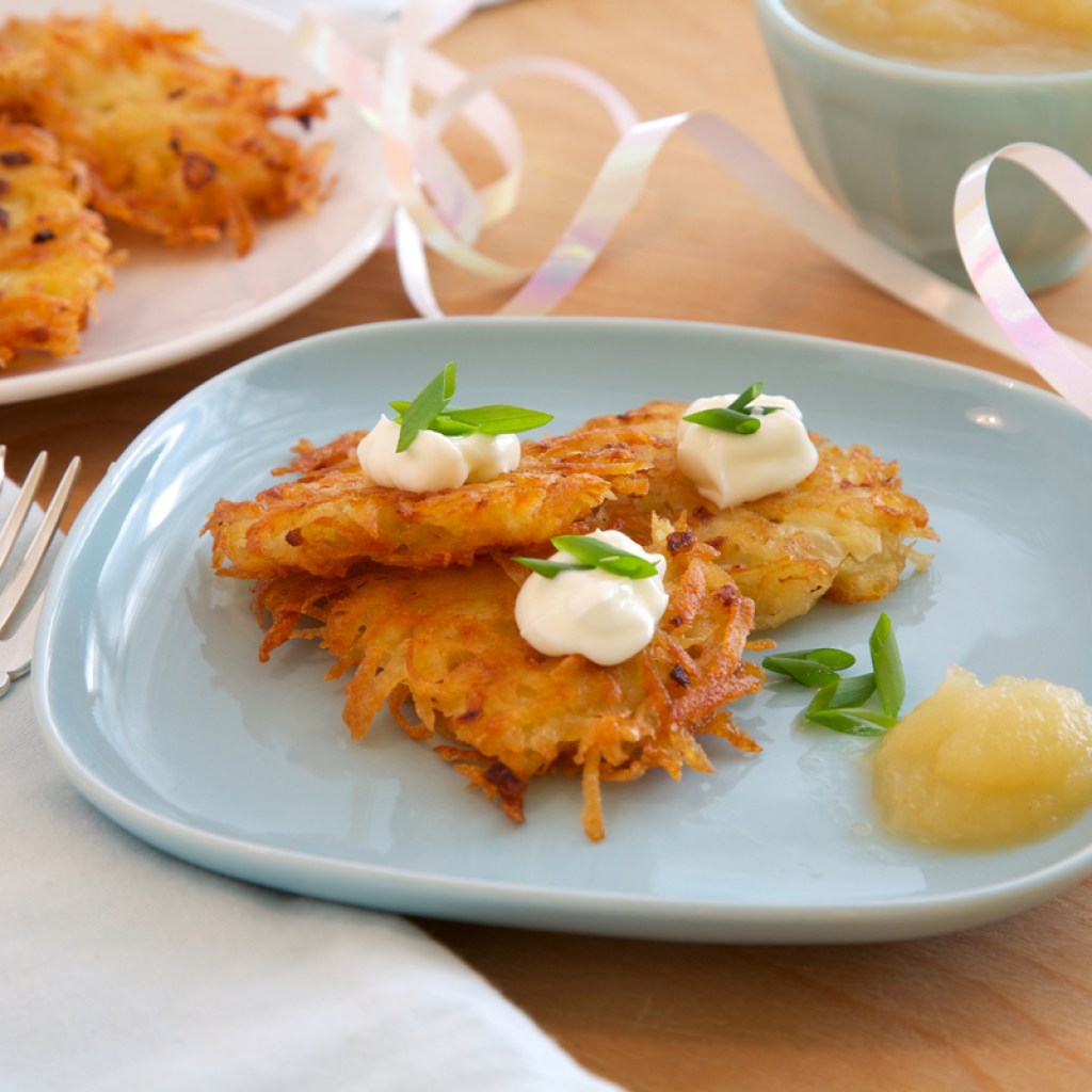 Set up an array of traditional toppings like applesauce and sour cream, and then dress them up with some of these more inventive toppings:
