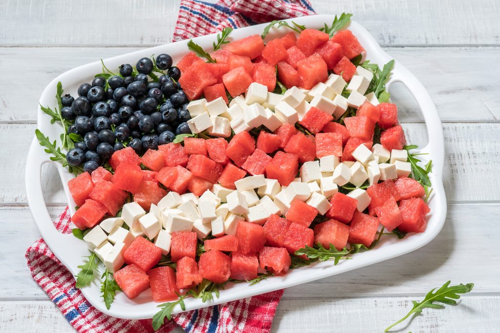 Food is an easy way to incorporate signature holiday colors into your party. Assemble a festive fruit tray with blueberries, strawberries, and white flesh nectarines for a sweet and colorful side dish. Charcuterie boards can also follow an Independence Day themed with white cheeses, red and blue-colored jams, and even American flag toothpicks. Don’t forget to incorporate festive drinks and cocktails for the adults.
