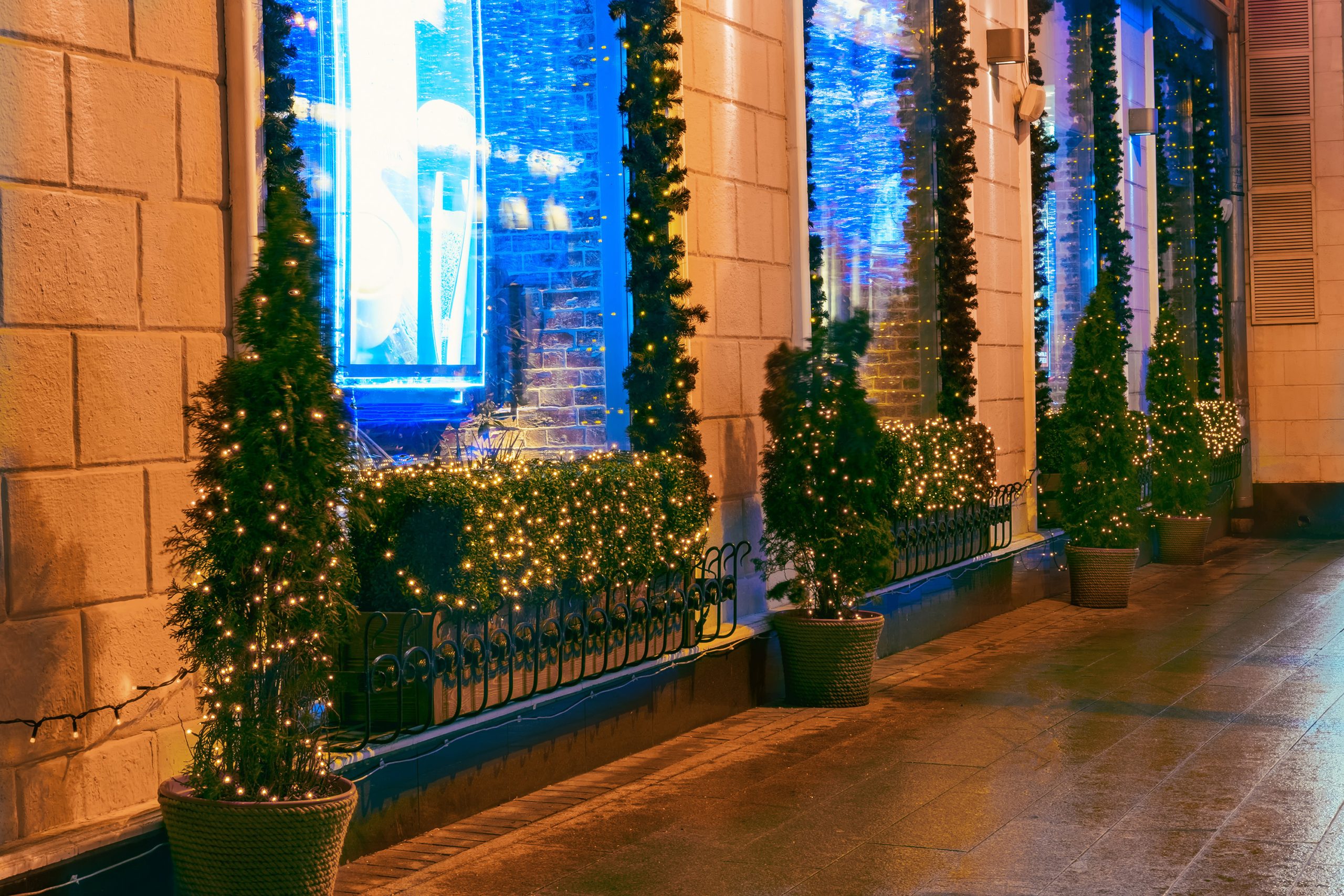 If large trees are too time consuming, difficult, or expensive for you to tackle, you can still enjoy the twinkle of outdoor lights on your smaller trees, shrubbery, and bushes. The trick is to get as many lights on the trees as possible and to focus on those trees with the most unique shapes and angles for optimum appeal.
