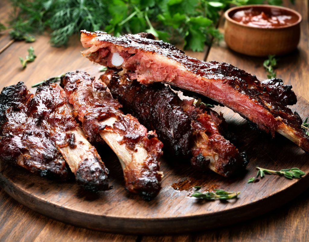 - Sauce and smoke for 1 hour. Take the ribs off the smoker and brush with more BBQ sauce. Place them back on the smoker — bone side down — and smoke for one more hour. Then remove them from the smoker, brush a final time with BBQ sauce, and serve.