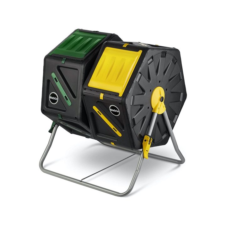Two is always better than one, as the old adage goes. So, a dual-chamber compost tumbler is more productive than a single-chamber one, such as the Miracle-Gro Dual Chamber Compost Tumbler. It is a smart multiple-chamber choice, offering more composting capacity and yet in a small enough size to fit on a balcony, porch, patio, or rooftop garden. It also has tight seals designed to keep out unwanted pests.