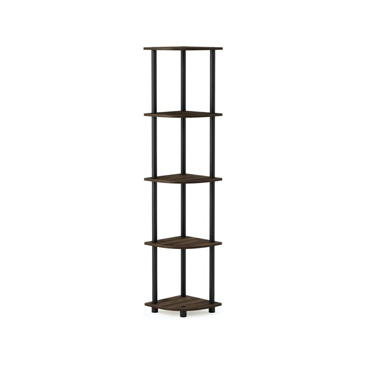 Simple, stylish, functional, available in multiple colors, and suitable for any room — that sounds like a highly attractive corner bookshelf. Such is the Furinno Turn-N-Tube 5-Tier Shelving Unit, a prime overall model. It fits a tight space and a tight budget, and it is very sturdy on a flat surface.