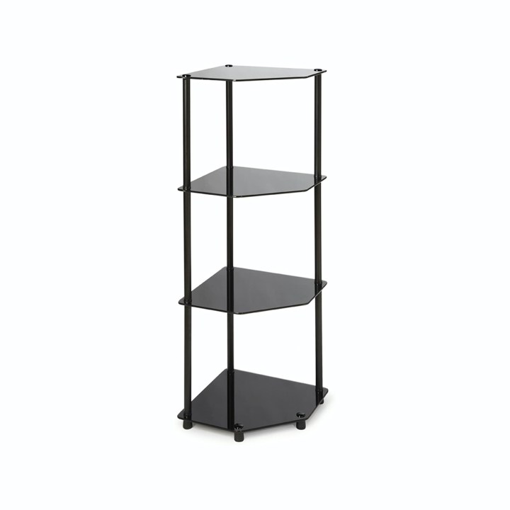 You can’t beat the clean, sleek look of a glass corner bookshelf, which is offered by the Convenience Concepts Glass Corner Shelf. The four-tier corner unit features attractive black tempered-glass shelves.