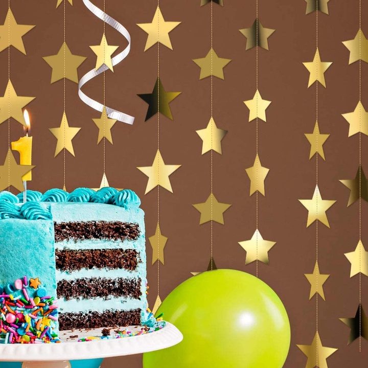 If you want to dress up a room for a party, hanging decorations is a great idea. Patelai Hanging Party Decorations are a top consideration for a wedding, birthday, or Christmas party, or some other soiree. Each package contains 130 feet of very attractive golden glitter star-shaped garland.