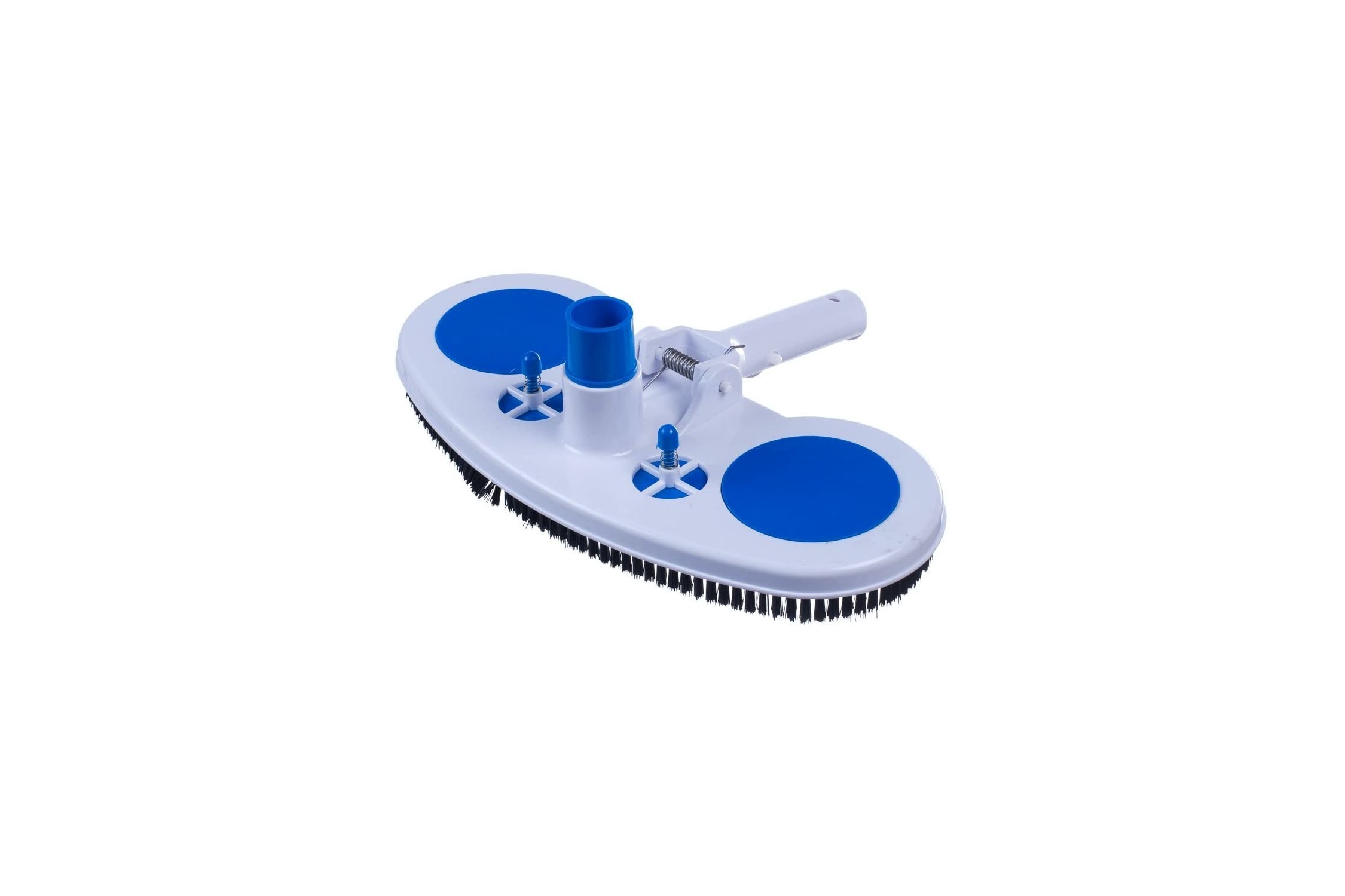 If you’re concerned about a vacuum possibly damaging your above-ground pool, then consider the Milliard Pool and Spa Vacuum Head. A top option with soft bristles, it offers polypropylene bristles designed to be firmer than nylon but softer than steel, providing a better balance to clean all types of pool surfaces. The vacuum’s port fits standard 1.25- and 1.5-inch vacuum hoses and its handle has spring-loaded locking clips.