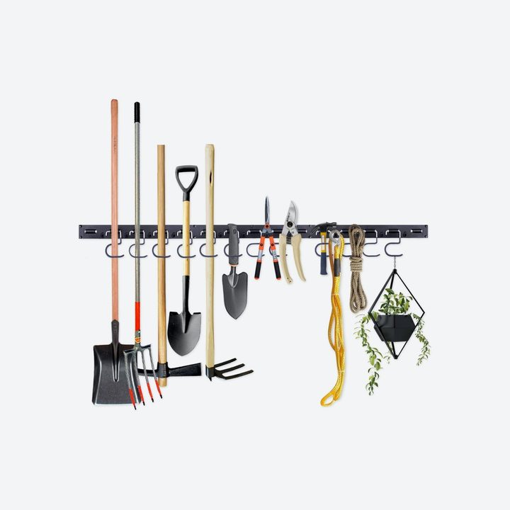 Organize tools of all sizes with the NZACE Adjustable Storage System. Mount this wall holder in your garage, shed, or closet for a sturdy storage solution that is easy to install. Use as three individual 16-inch strips or interlock into one long 48-inch unit with 12 hooks and 12 pegs, to save space and keep your workshop tidy.