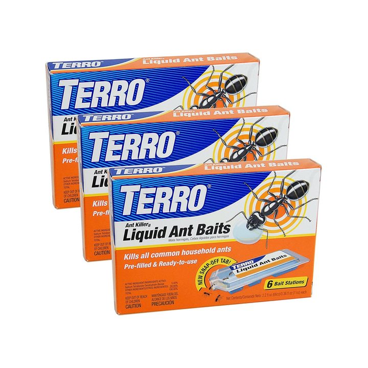 Terro’s T300-3 liquid ant bait features borax, which eliminates the colony by allowing ants to live only long enough to share the bait. One pack contains three liquid-filled bait stations, which can be placed in tight spaces like under large appliances and household furniture.