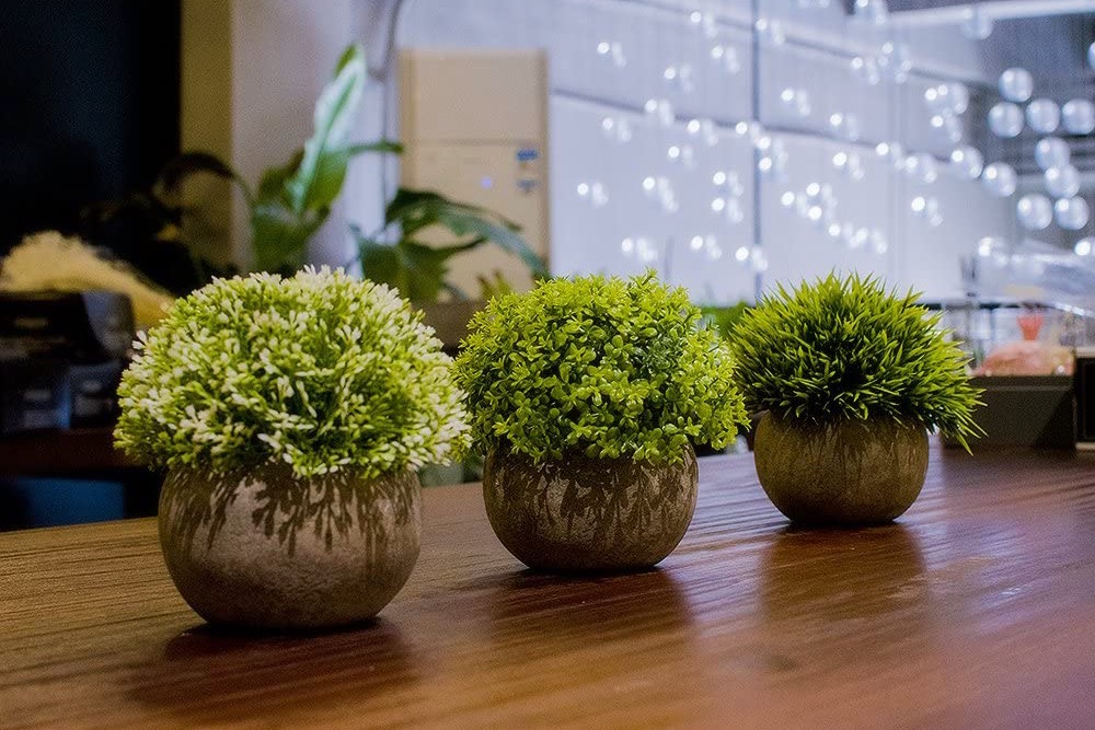 Add a sense of freshness and brightness with the Opps Artificial Mini Plants. This set of 3 lovely topiaries are perfect to enhance any table, desk or bathroom with style. Made from advanced PE materials, these lively decorative items are the natural way to bring the outdoors in with convenience and durability.