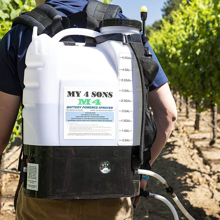 Never pump again with the MY4SONS Battery Powered Backpack Sprayer, a completely automated solution that can spray for up to eight hours on a single charge. That is over 200 gallons of solutions you can spray without a single pump. Meet all your needs with both a stainless-steel wand and an acid-bleached wand included.