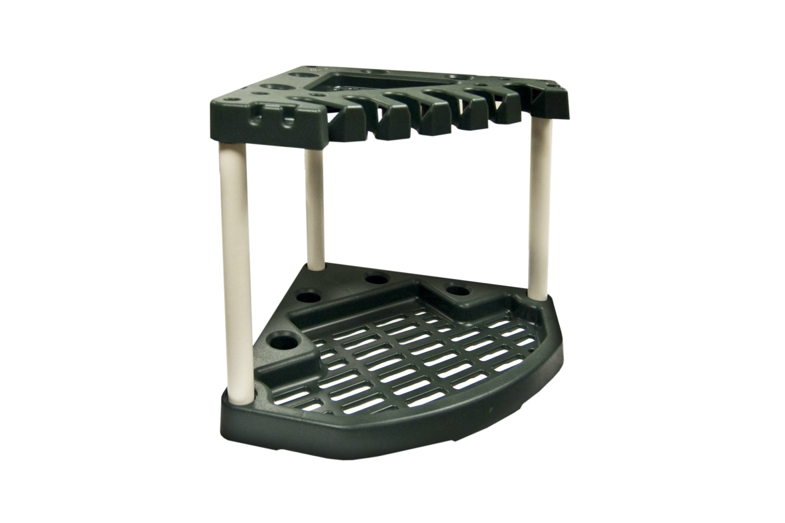The Rubbermaid 30 Tool Corner Tool Rack really sets the standard for tool organizers. With an extra-large base for stability, optional wall-anchoring options, and superior capacity, this organizer will make your garage a happier place. The no-tool assembly is super easy.