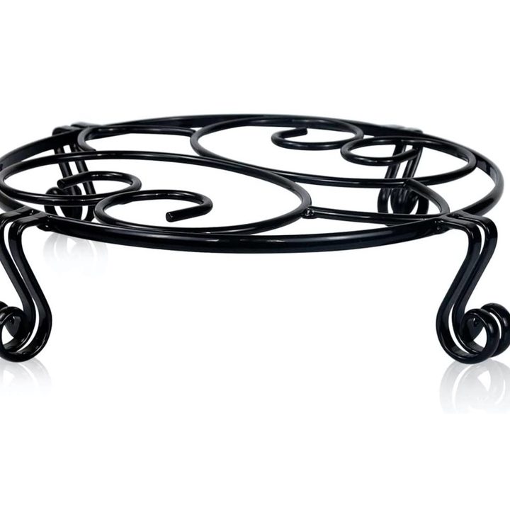 Combine the elements of metal and wood harmoniously with the Yimobra Iron Flower Pot Stand. This classic rack for planters has a diameter of 11.8” and is strong enough to hold up to 300 lbs of weight. It keeps your plants balanced and will never rust or damage your floors.