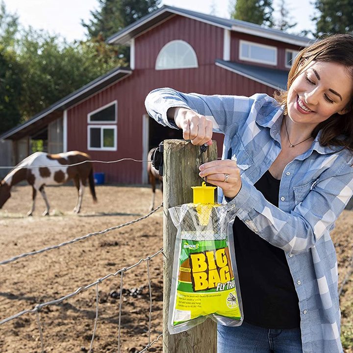 Ranchers and farmers know it: There is no better solution to keep those pesky flies away than the RESCUE Outdoor Non-Toxic Big Bag Fly Trap. This trap is baited for hundreds of different flies species to assure it fixes your problem. Just add water, and the attractant will start doing its magic by drawing the flies in.