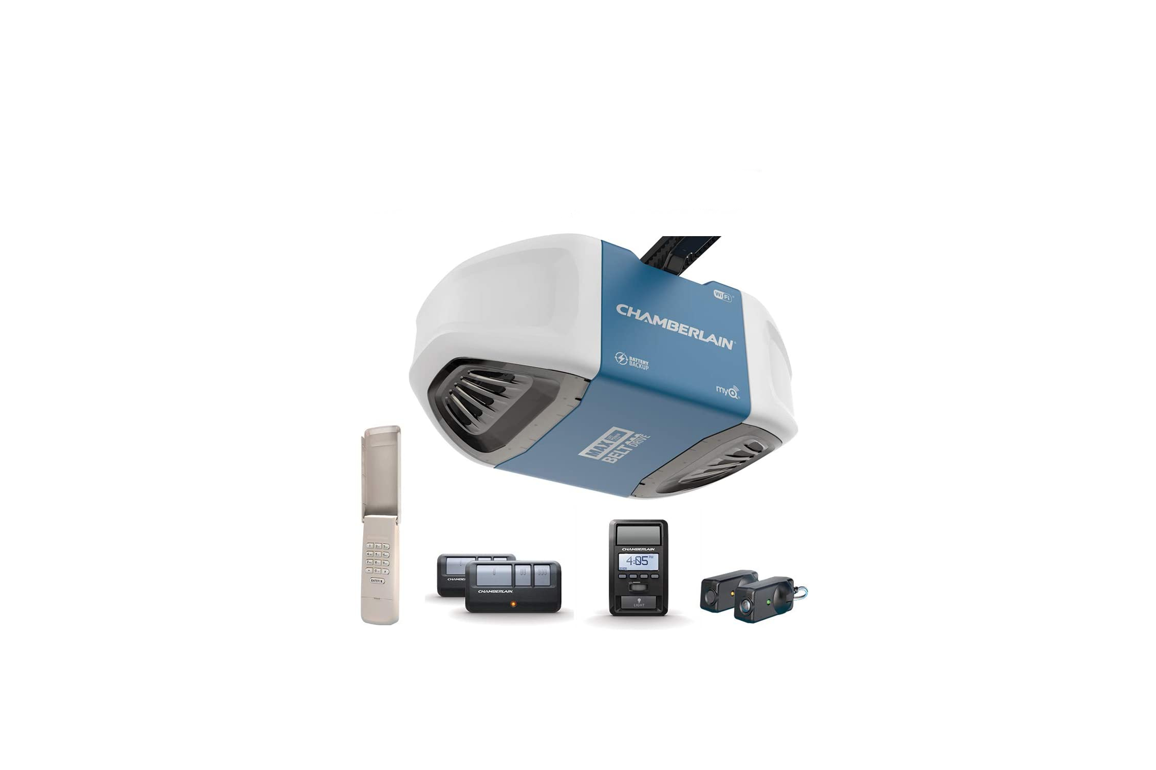 With built-in myQ technology, the Chamberlain B970 Garage Door Opener is a smart device that connects to your phone to open, close, and inform you of the status of your garage door. The premium materials of this ultra-quiet and strong belt drive will provide years of reliable and smooth performance. It includes multiple-button remote controls for up to three openers.