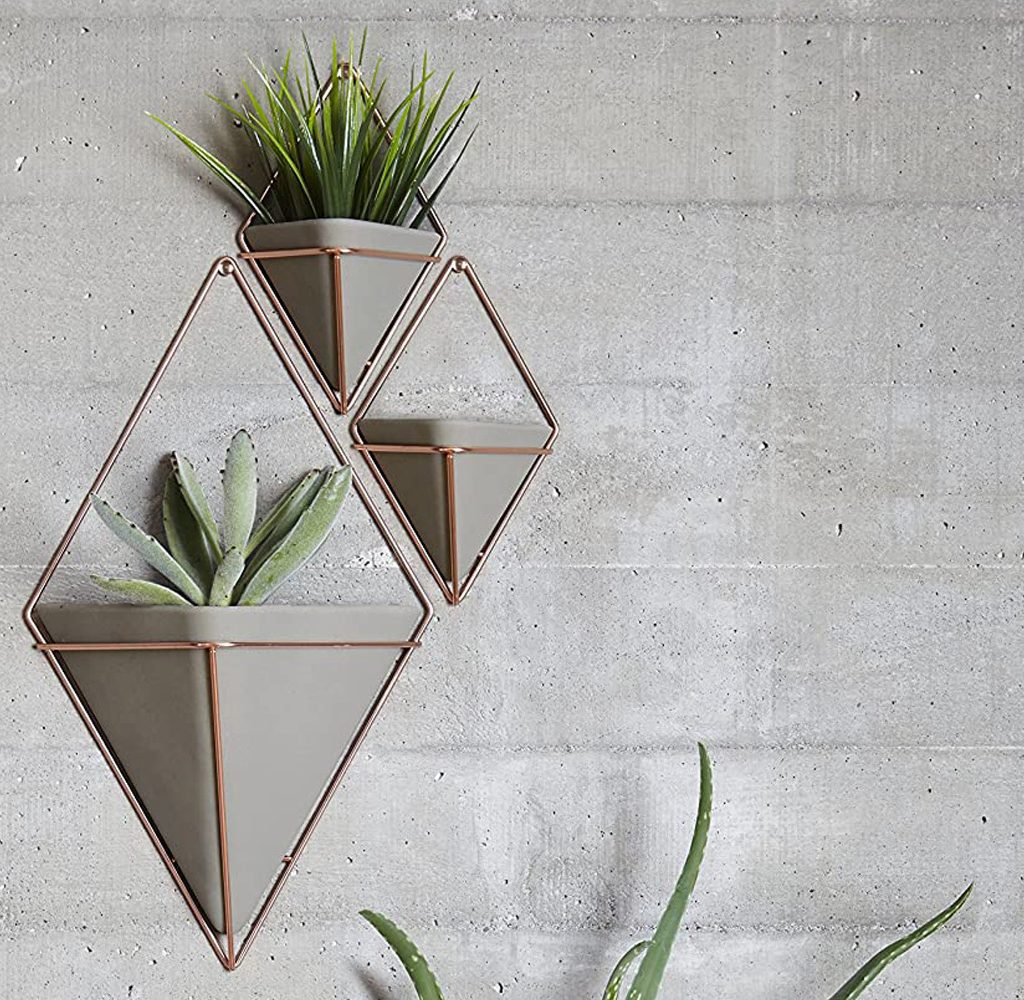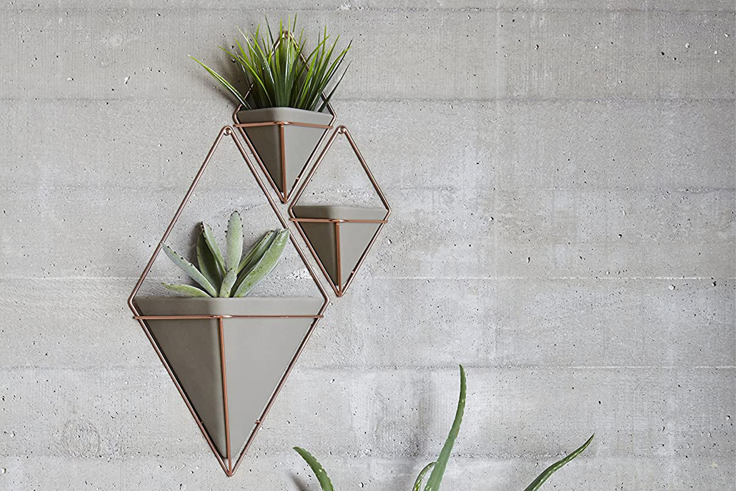 If style is your No. 1 priority, Umbra’s Trigg Hanging Planter is an effortless way to enhance your space. Each planter comes with a triangular concrete planter bottom and a triangle metal hanger, creating a diamond. This clean yet intriguing design is the best-looking option. Although the screws for installation are lightweight, avoid installing this planter on delicate walls.