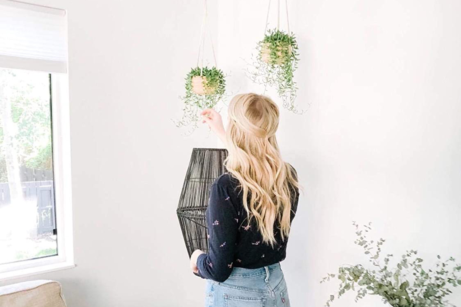 A hanging planter freshens up your home in as little as one step. Choose from resin, macramé, or metal hangers to complement your kitchen, office, or living room. Remember that some planters require wall screws or ceiling hooks, depending on the brand. However, this is a small step for a more-attractive home, better air quality, and a cohesive household theme.