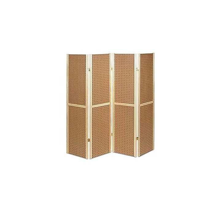 If you need a more aesthetically pleasing pegboard to organize bedrooms, SSWBasics offers a wooden, foldable pegboard. Each panel measures 60” H x 15” W with four panels total. The natural wood color complements any decor and display.