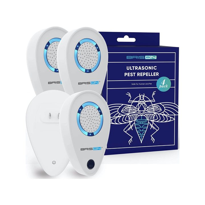 BRISON delivers the best overall ultrasonic pest repeller. A single electronic device covers up to 1,100 square feet. The sleek, white and teardrop-shaped design helps it blend into walls and wall sockets. An easy on-and-off indicator makes this easy to use and monitor.