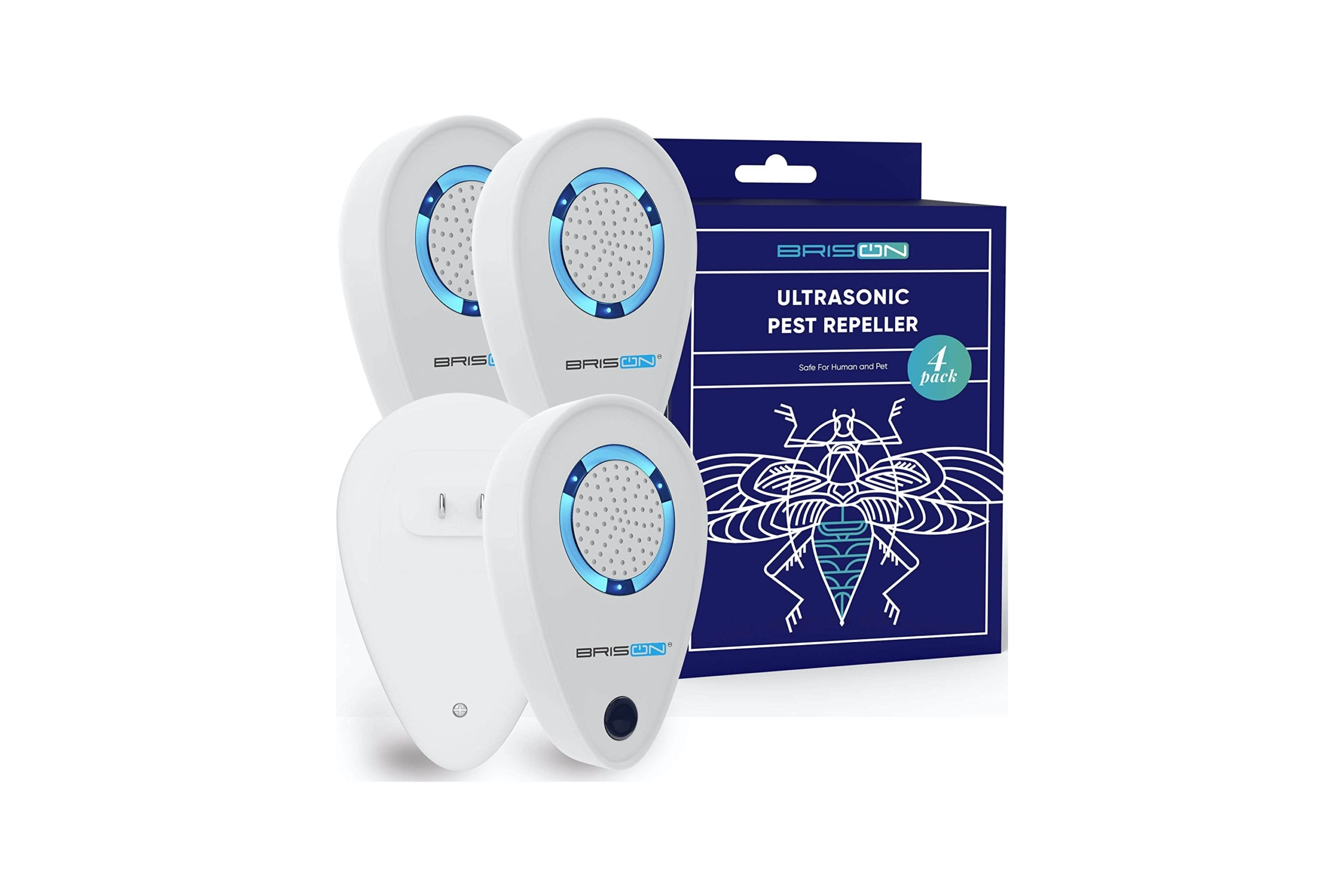 BRISON delivers the best overall ultrasonic pest repeller. A single electronic device covers up to 1,100 square feet. The sleek, white and teardrop-shaped design helps it blend into walls and wall sockets. An easy on-and-off indicator makes this easy to use and monitor.