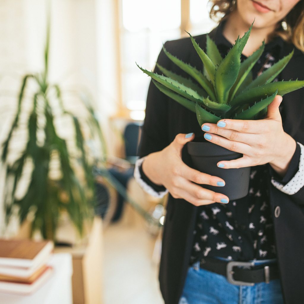 Hardy, good-looking, and low maintenance, too, this popular plant received NASA’s stamp of approval as one of the best for cleansing the air. It’s also a lovely way to brighten up a bare spot on your counter or windowsill. Note: The rubber plant is toxic to dogs and cats, so be sure to keep it out of reach of pets.