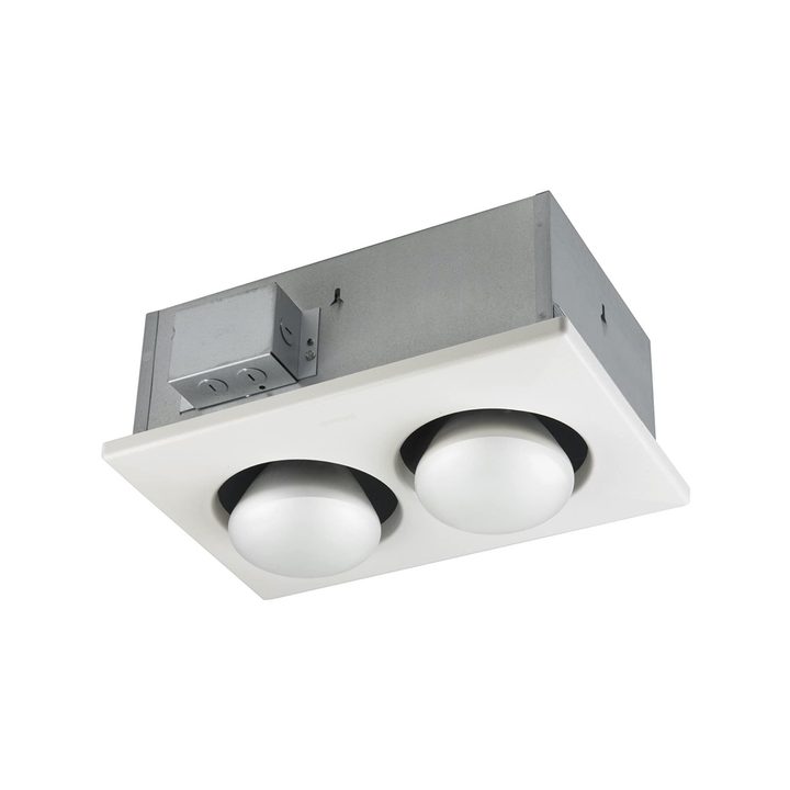 What’s a very fast way to heat up a bathroom? A dual bulb heater. The Broan-NuTone 163 Bulb Heater is a leading dual-bulb model, generating heat from two 250-watt infrared bulbs (which aren’t included).