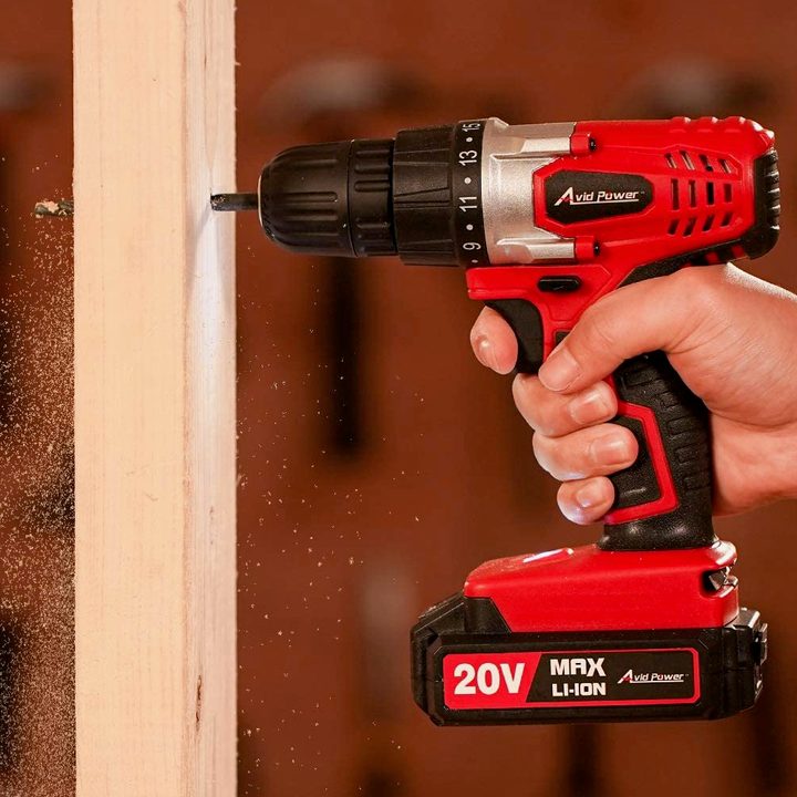 Get both performance and a budget-friendly price with the Avid Power 20V MAX Lithium Ion Cordless Drill, an efficient power tool with all the functionality you need to get the job done at a price that will make your bank account happy. It features a clutch with 15 positions, rechargeable battery with USB port, 10 drill bits, and 10 driver bits.