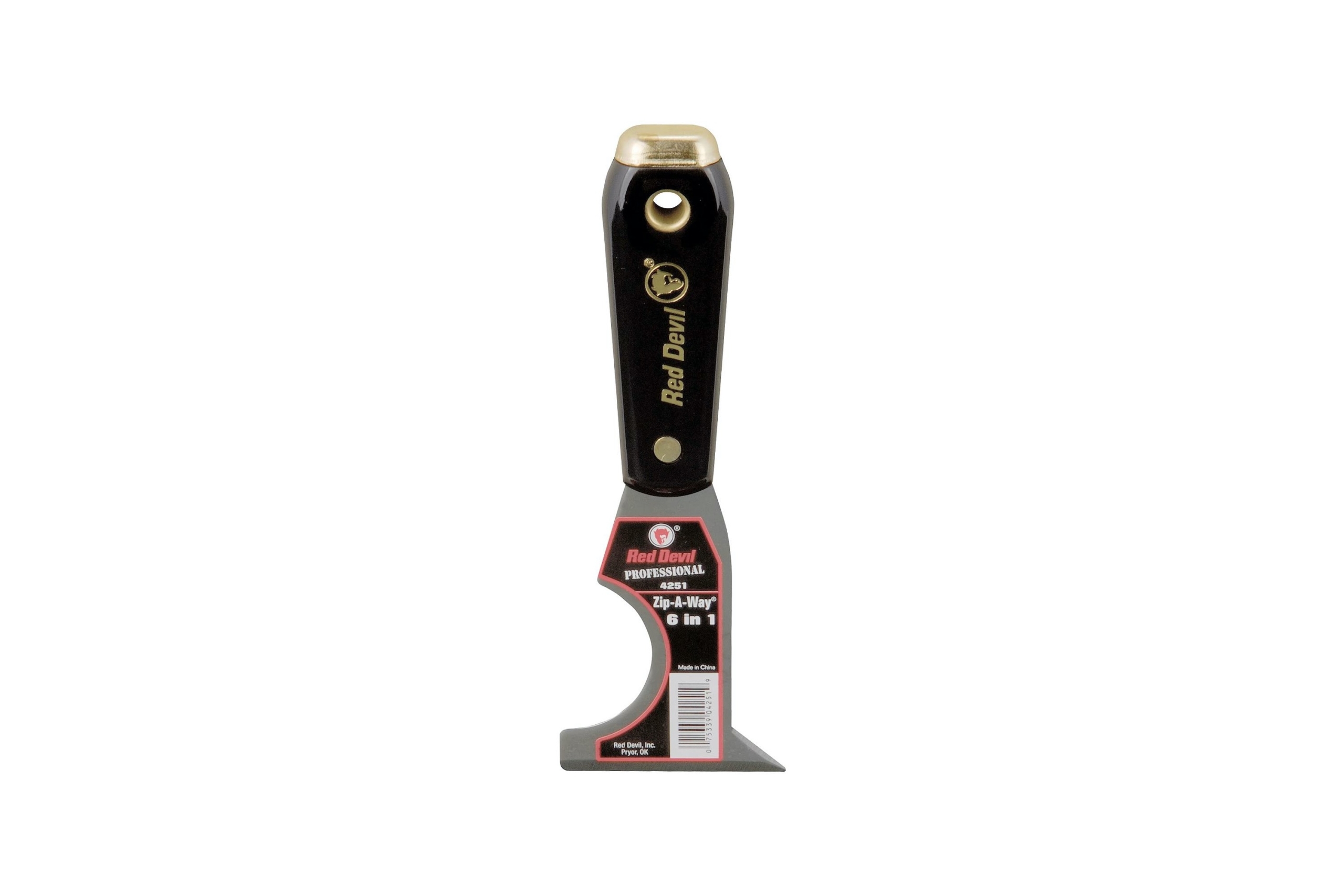RED DEVIL offers a versatile 6-in-1 painters’ tool that makes your job much easier than you ever imagined. Use it to open paint cans, gouge, scrape, remove putty, spread, and clean rollers. With a solvent-resistant handle and rust-resistant steel blade, this durable tool is built to last.