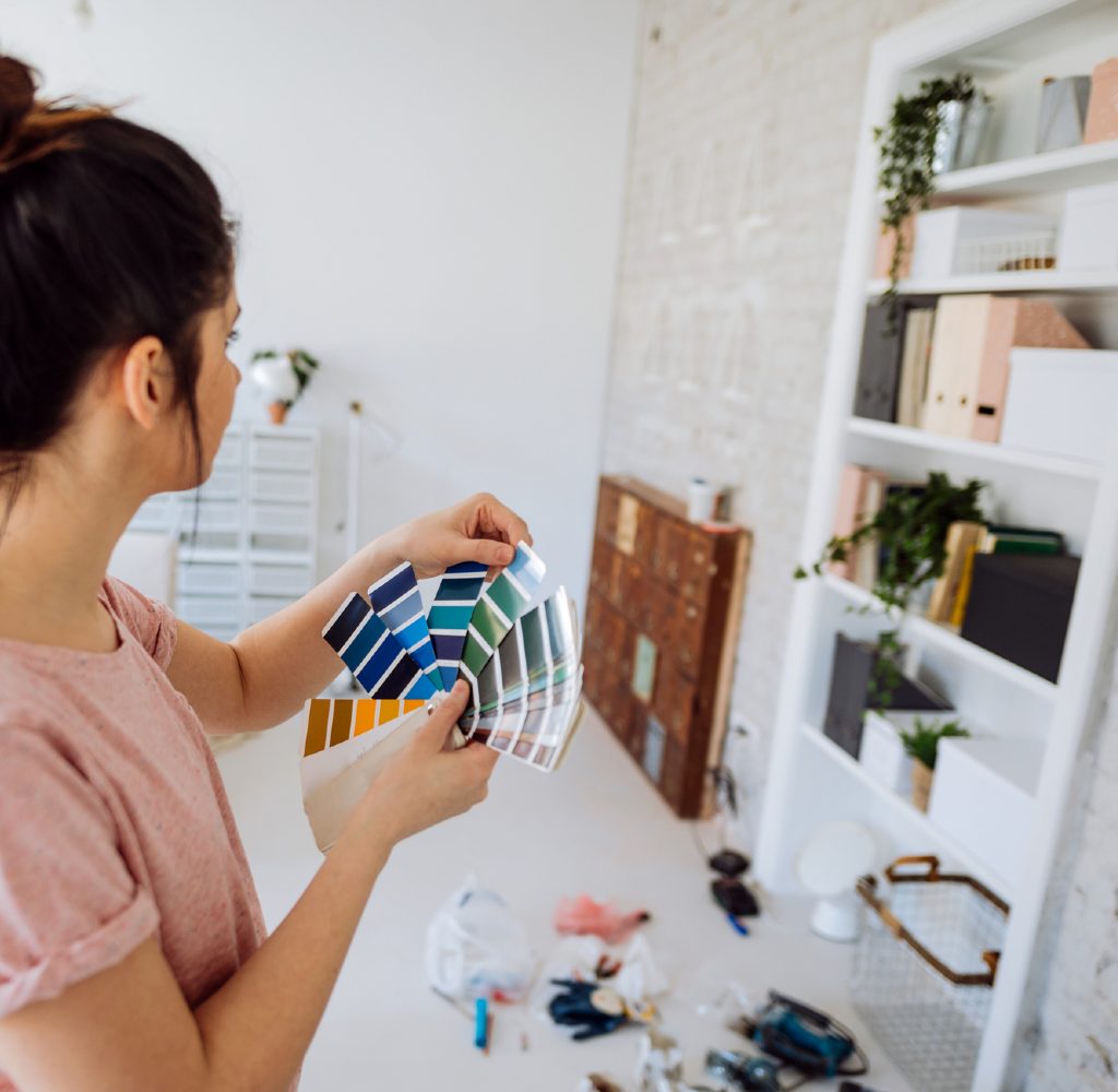 When choosing colors for the walls of your small-spaced apartment, it’s essential to keep the room light and bright to add the illusion that it’s much larger than it is. Feel free to mix and match these colors — there’s no need for monochrome. Just be sure they’re muted tones that reflect light well. Dark, bold colors are a surefire way to reach a “walls are closing in on me” type of energy in your room.