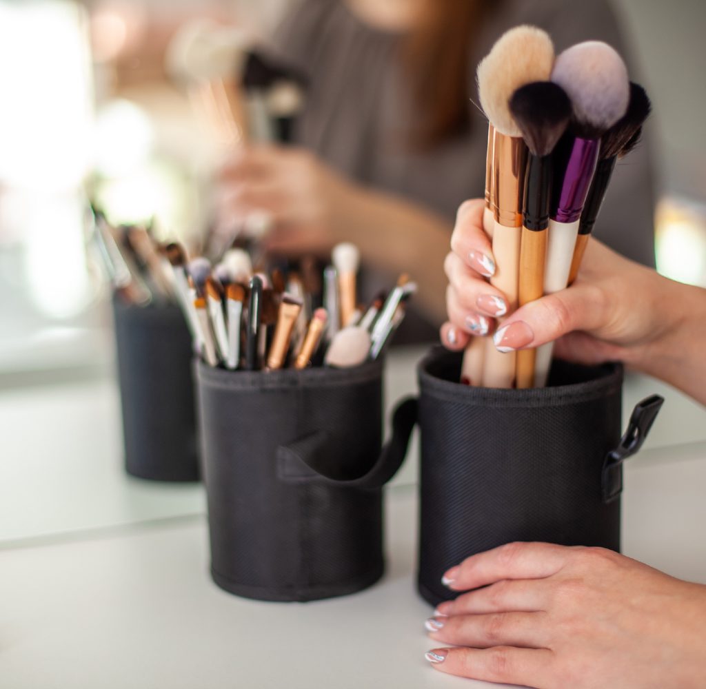 Now it’s time to repeat the process with your makeup tools. Brushes, sponges, cotton swabs, and more can all harbor bacteria and cause infection. If the tool is older than six months old, it probably needs to be replaced or at least deep cleaned. Once all your products are organized, wipe down the makeup bag, vacuum the inside to get rid of any dust and debris, then replace your products.