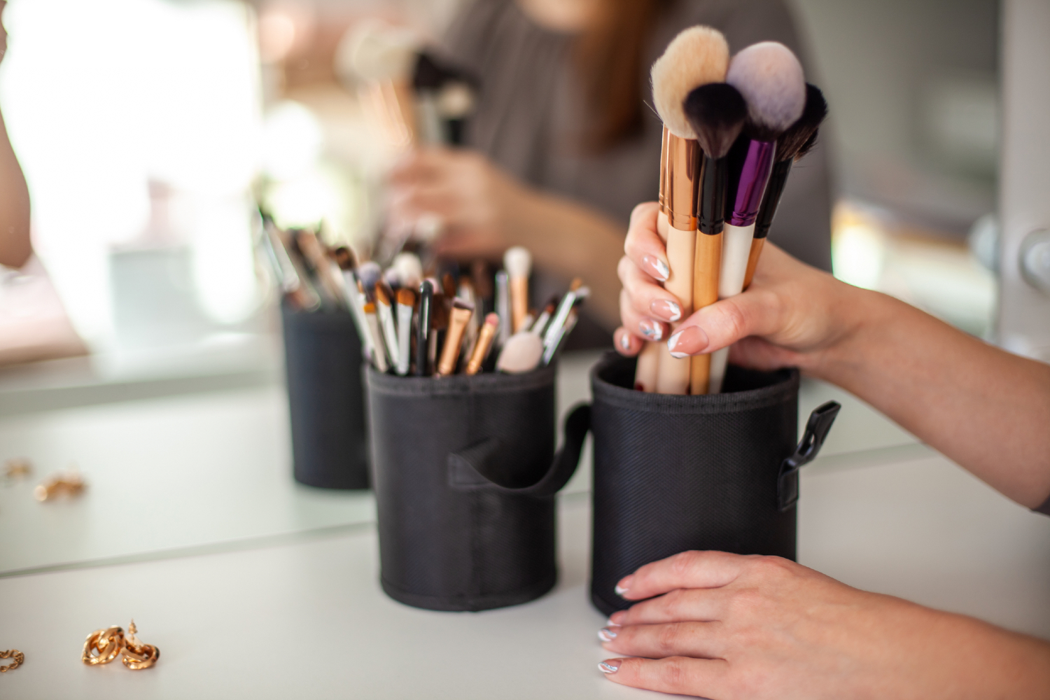 Now it’s time to repeat the process with your makeup tools. Brushes, sponges, cotton swabs, and more can all harbor bacteria and cause infection. If the tool is older than six months old, it probably needs to be replaced or at least deep cleaned. Once all your products are organized, wipe down the makeup bag, vacuum the inside to get rid of any dust and debris, then replace your products.