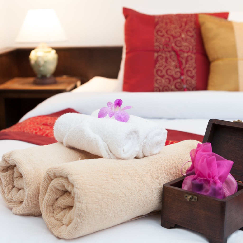 Red can be used in many ways to create a serene, tranquil bedroom.