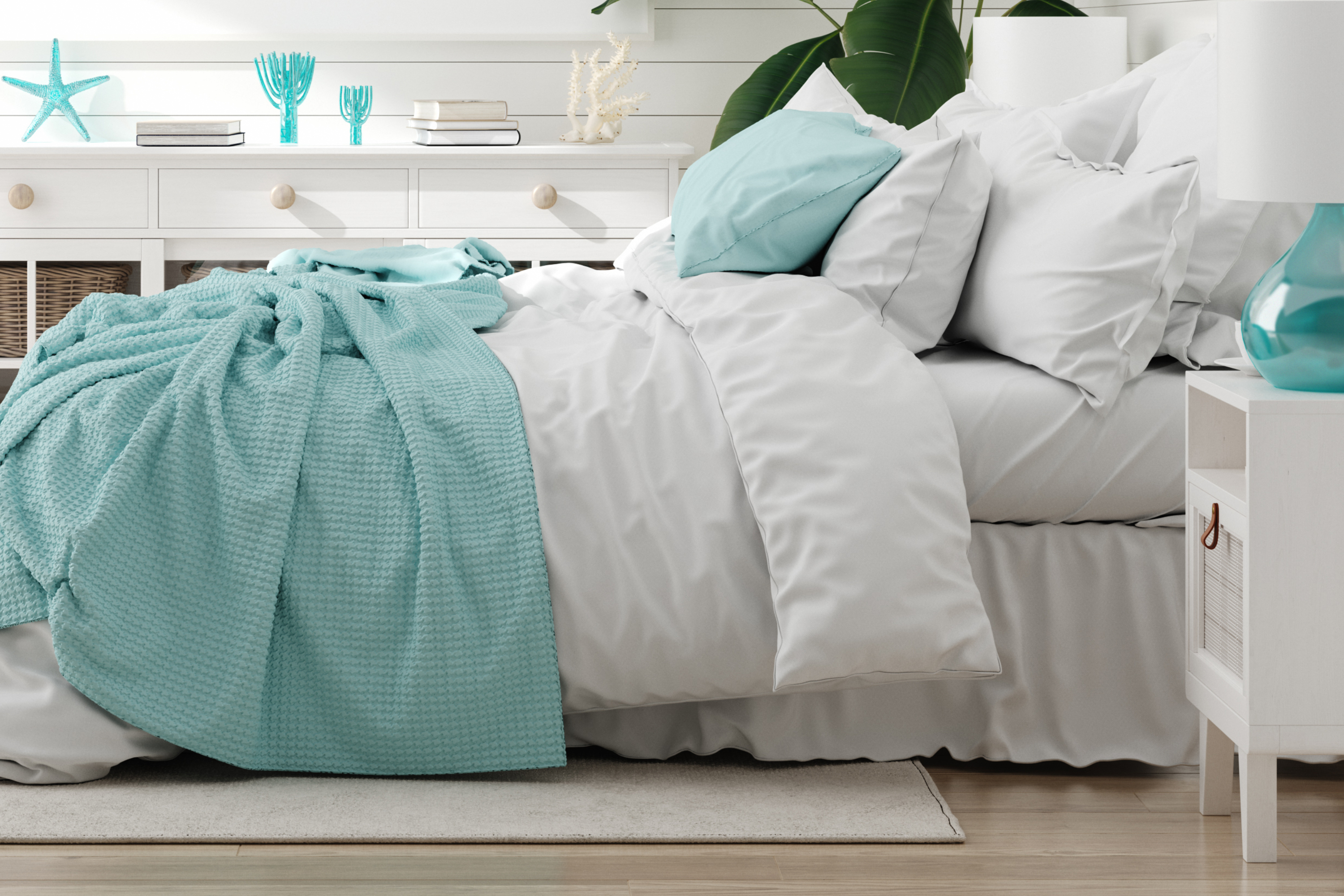 Keep your details fresh and simple when adding the finishing touches to your modern coastal-designed space. For example, add a few lush plants to invite more life into the space. Or add neutral-toned pillows and blankets to sofas and chairs for a cozy look. Try not to go overboard; instead, focus on a minimal and modern approach to your decor. Too much clutter will leave your space feeling kitsch or poorly designed.