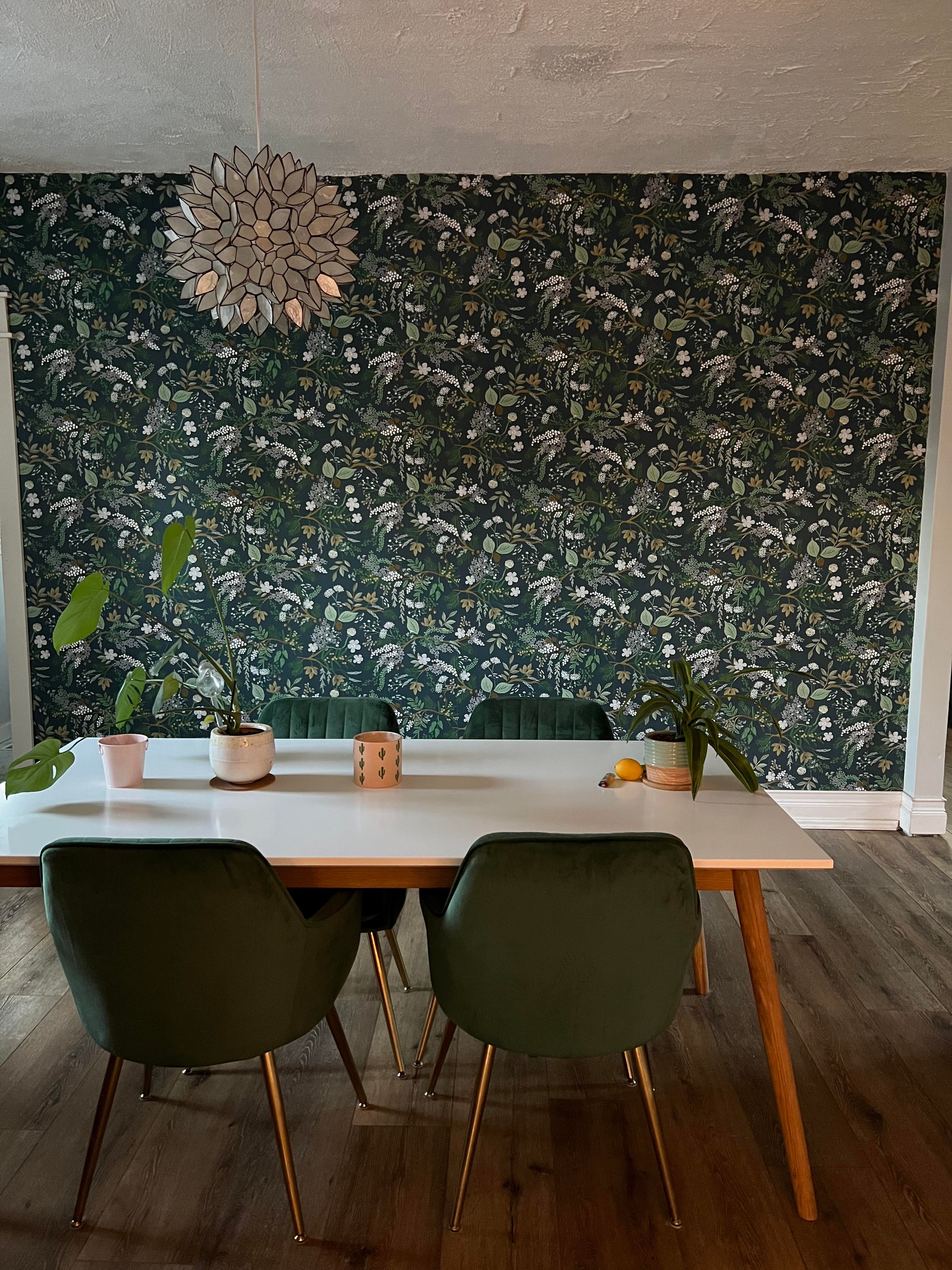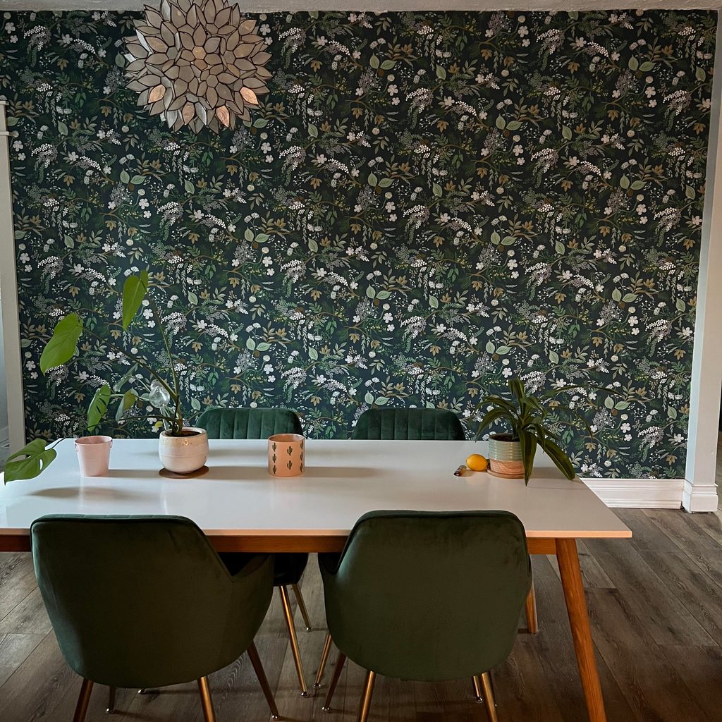 Redditor grandfatherpigo recently posted the above picture to the r/HomeDecorating subreddit, asking fellow Redditors how best to design around this nature-inspired green wallpaper from Rifle Paper Co. Here are the internet’s best answers. Read on if you’re in need of a little inspiration for your own space (or if you just want to see if your design pick made the list).